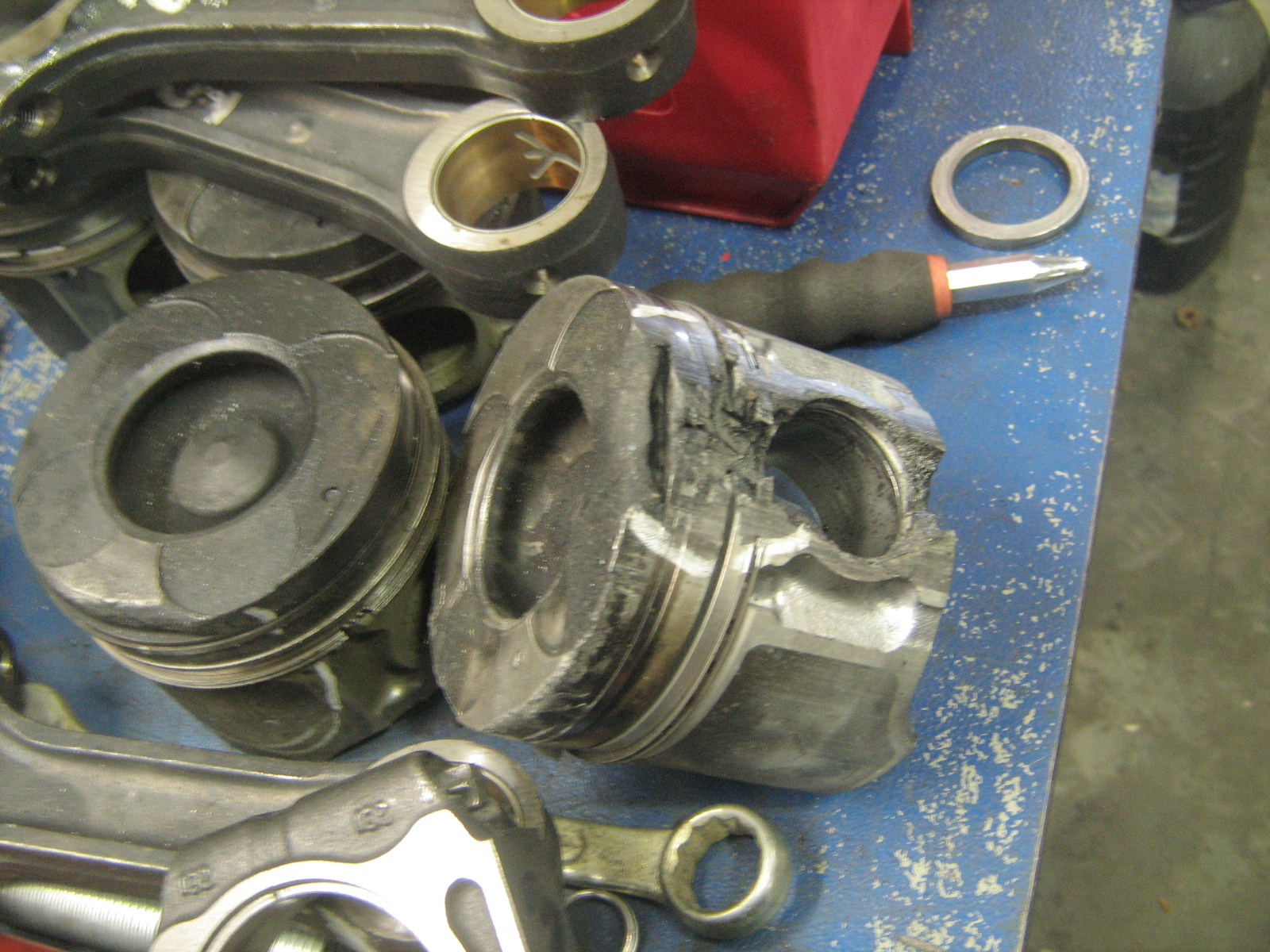 Первопричиной стало разрушение турбины, в следствии чего масло через впускной коллектор попало в 4 и 5 цилиндр - в результате "гидроудар" и вот последствия