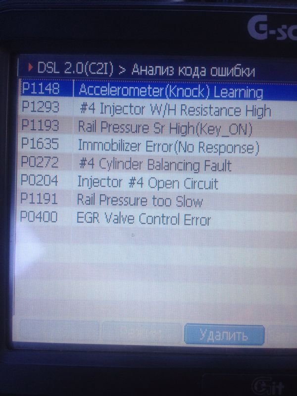 Люди добрые, кто можем бестолковому рассказать, что и почему произошло или более менее одну из реальных причин! Начну из далека с 08.03.2014, и так..... Ездил по рабочим делам в международный женский день в один из поселком нашей области, 510 км от Магадан. Утром в 6:30 на полупустой бак дозаправил топлива с АЗС + 3 канистры по 20 литров. Приехал в поселок, поделал дела ( обычно всегда оставался с ночлегом в теплом гараже. Но тут не повезло и абонент в не зоне доступа, более из местных ни кого не знаю). Решил возвращаться в Магадан (время 17:45), остаток литров 10 в баке. Беру солярку с кунга (на улице -30), одну канистру в теплый салон, две остались в кунге. Выезжаю проезжаю км 20-30 вот вот загорится лампа, вливаю более менее теплую солярку с канистры которая была в салоне и следом две из кунга, особо не переживал так как стоит подогрев топлива. Проезжаю еще 30, начинат периодически загораться чек, но гаснет. Таким образом доехал до последнего рубежа перед точкой не возврата (200 км в ночи без сотовой связи при -30 -40) до ближайшего поселка с людьми, двигатель затрясся, ехать не хочет, ЧЕк горит постоянно, ели как 30 км/час набирает. Ехать 200 км до цивилизации в ночи по перевалам и редким трафике не решаю, от туда до города еще 200 км. Вызвал эвакуатор с города, в 4 утра меня забирают, едем в город. В городе поставил на охраняемую территорию и больше не ездил. За три месяца приезжал посмотреть несколько раз, заводил, чек горит, двигатель колбасит как барабан стиральной машины. Записался на 9 июня на диагностику, сервисный центр, занимается ремонтом дизельных авто и комон реал. 8 июня вечером еду забирать машину с территории так как ближе мне из дома на нем ехать к ним. Завожу, двигатель трясет, чек горит, потихоньку выезжаю и проезжаю пару километров. Останавливаюсь что бы купить сигарет в магазинчике. Возвращаюсь и..... двигатель шелестит как новый, чек пропал, резвый как конь. Дал ему жару, покатался за городом. Приезжаю утром на диагностику, рассказываю что да как. Вечером звонят, все ок, серьезных проблем не обнаружили, почему горел и перестал на нашли, форсы не снимали. Сканер показал вот такие ошибки. Уже свыкся с мыслью что умерла 4 форсунка возможно из за перепада температур топлива, все равно думал под замену все 4. Но что сейчас думать не знаю.Вложение 4234