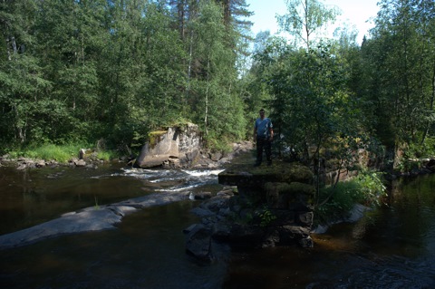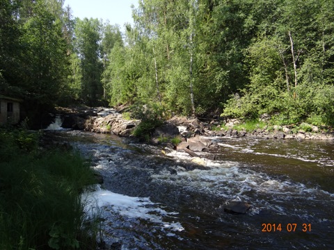Поужинав, мы отправились спать. Надо сказать, что в том месте река течет с большими порогами, которые видно на фото.