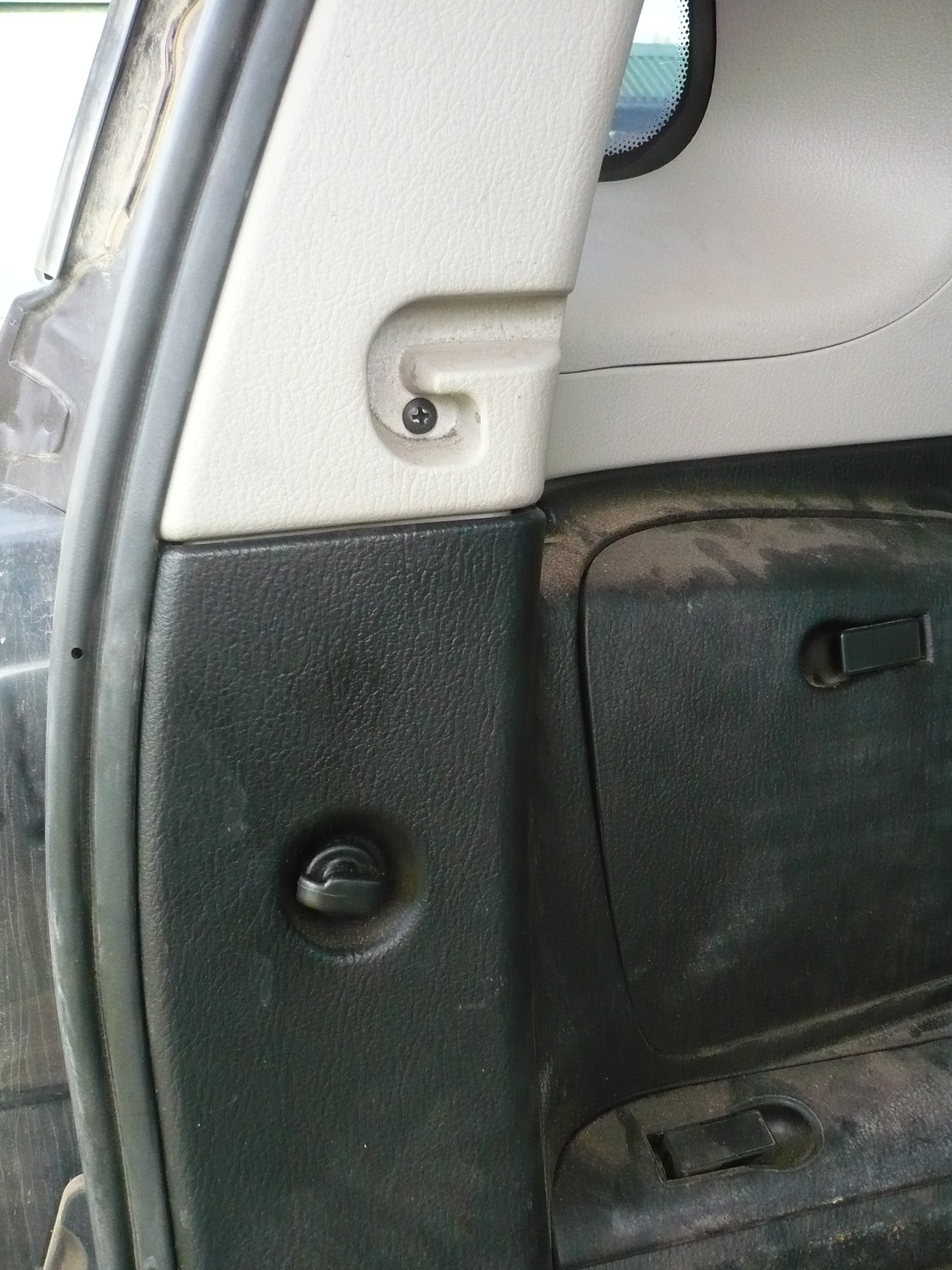 Откручиваем саморез черной облицовки над бардачком багажника