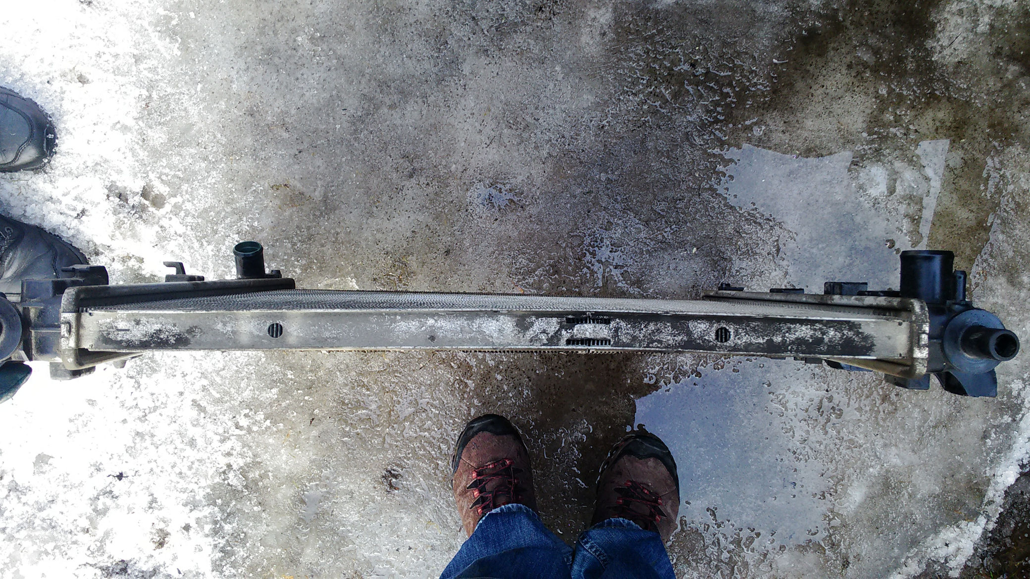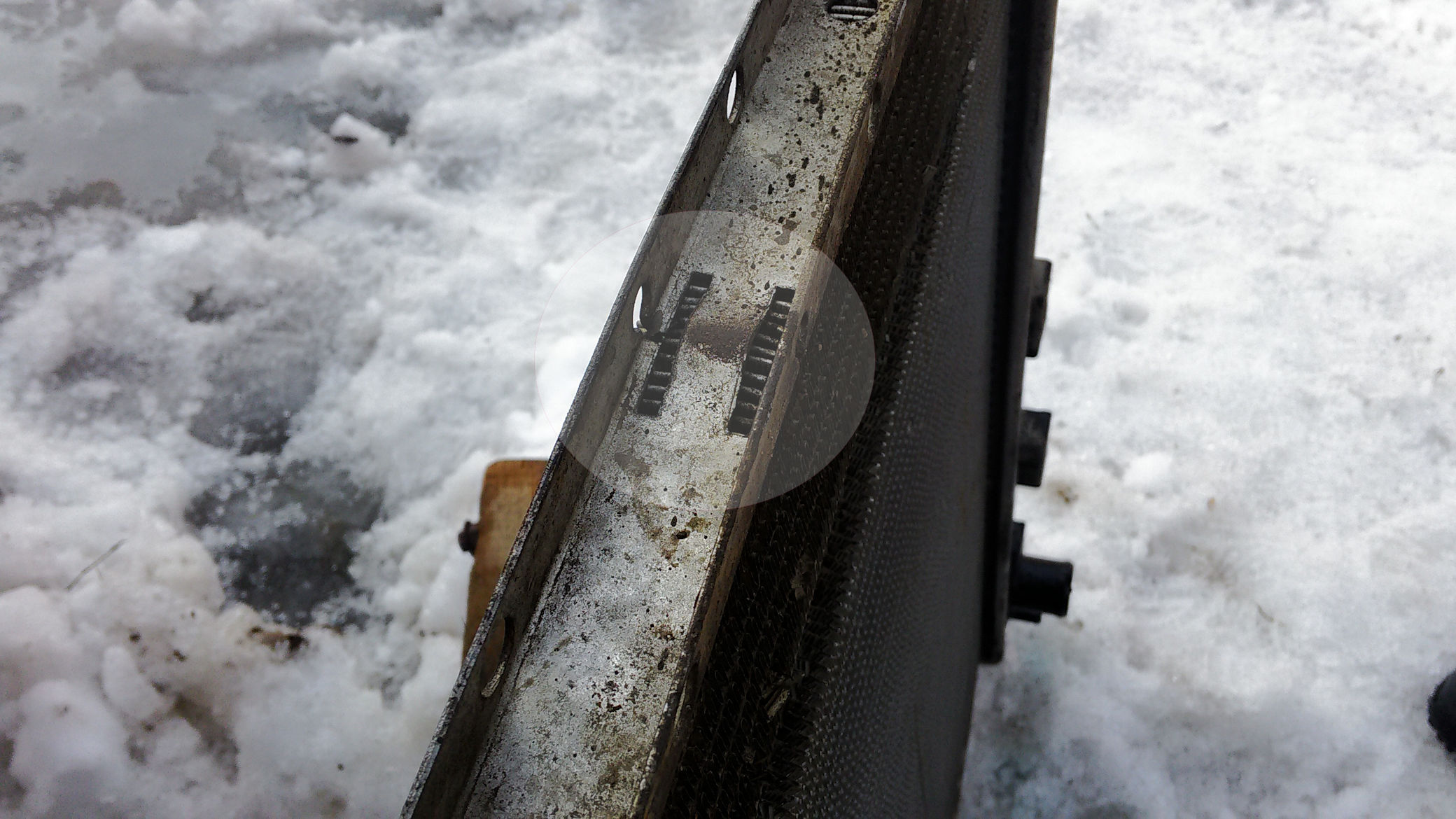 Механических повреждений, которые могли привести к поломке, на корпусе радиатора не наблюдается, но сравнив фотографии прошлого раза и этого заметил, изменилась геометрия самого радиатора.