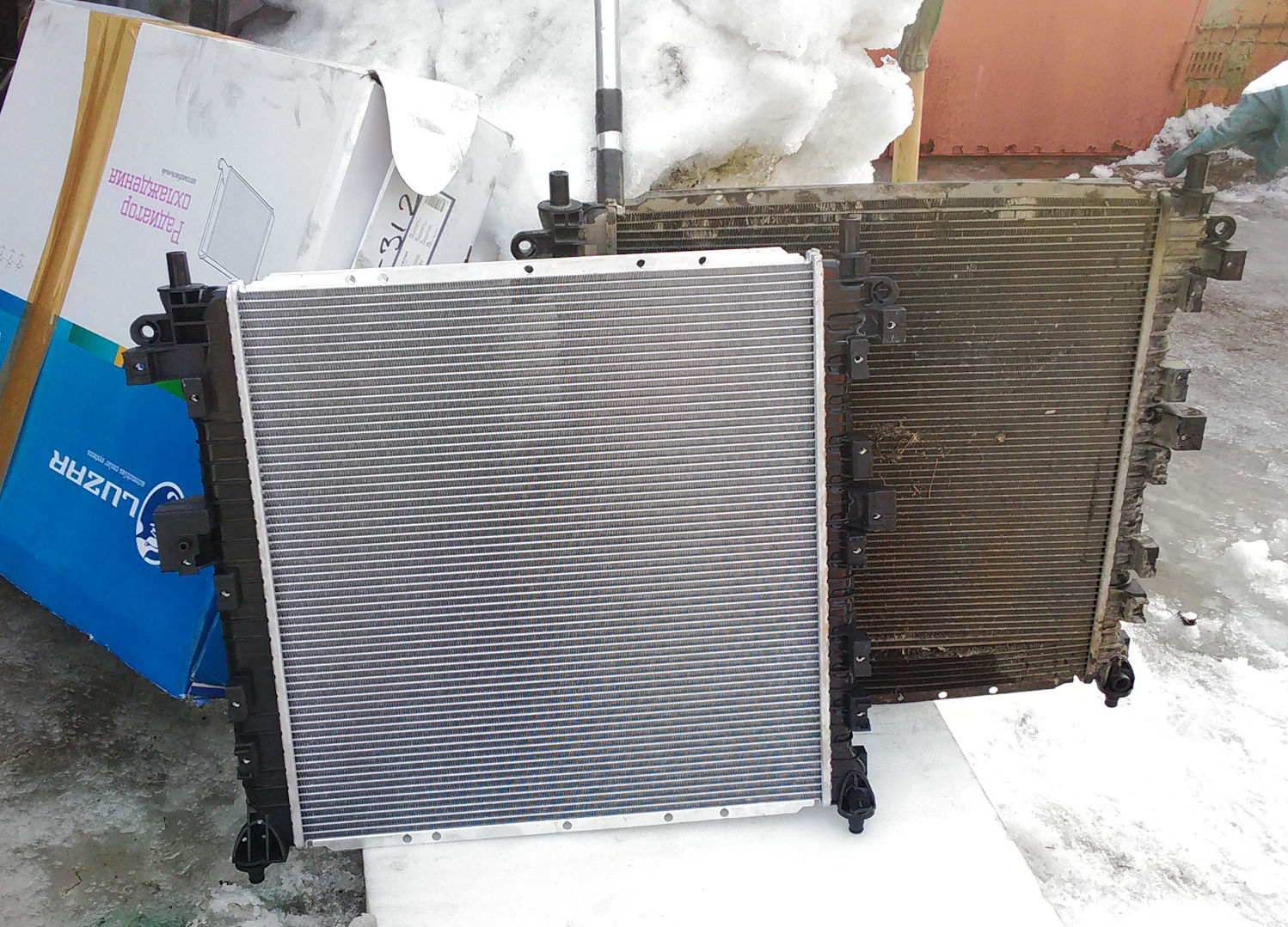 В этот раз поставил замену от фирмы Luzar. Сравнив два радиатора, увидел что на корейском есть заложенные места "надрыва", по этим места радиатор выгнуло в сторону "шарика". На новом радиаторе от Luzar таких мест нет, рамка везде одинаковая.