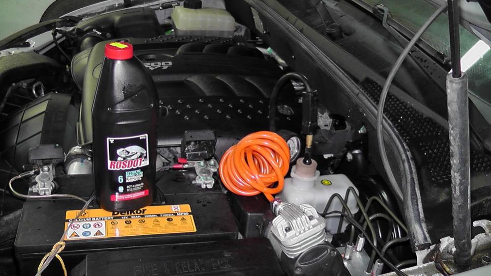 P.S. Я не знаю на какое давление рассчитан бачок с тормозухой, так что давление надо давать аккуратно, чтобы его не разорвало.