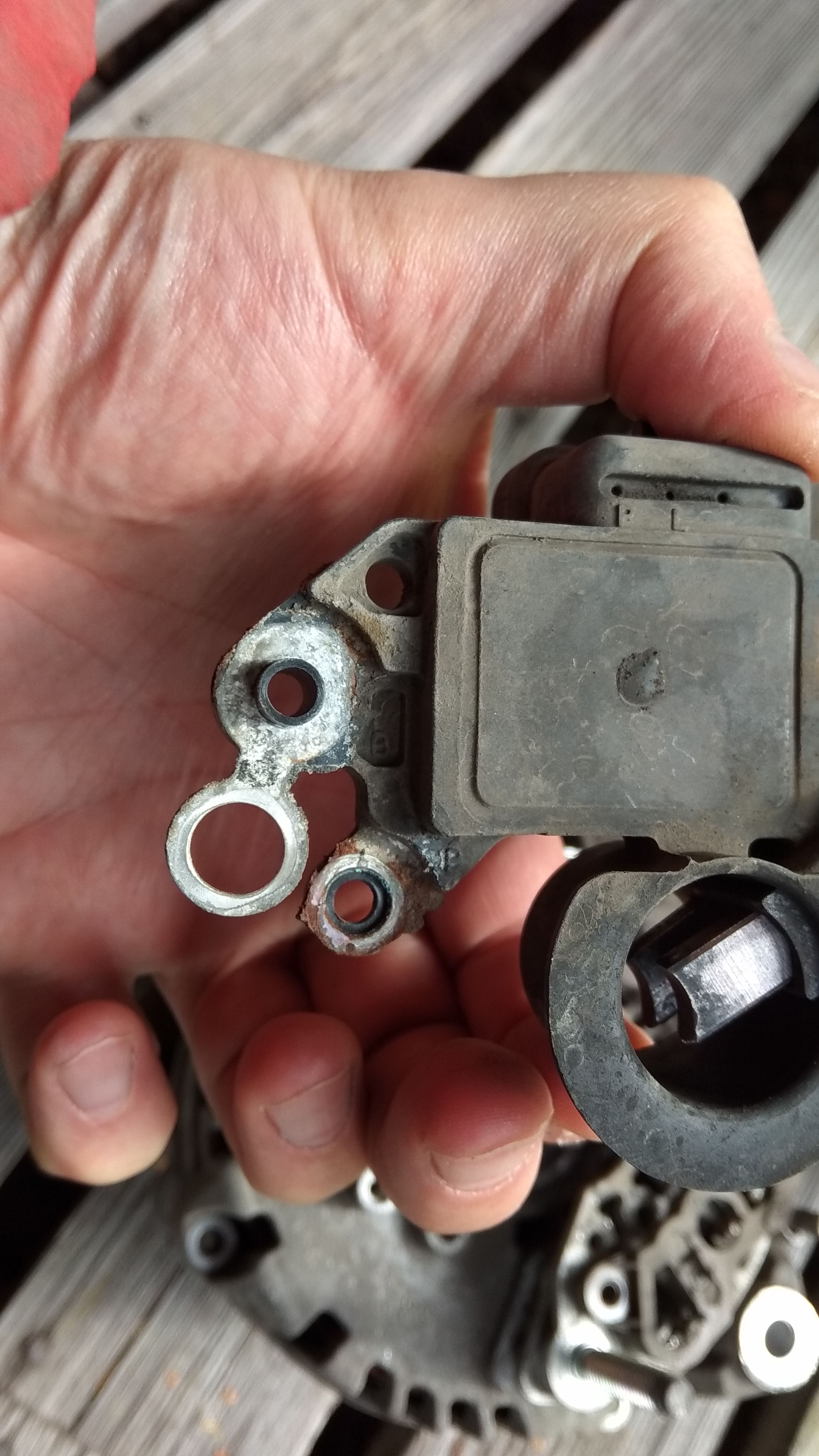 Мужики, сегодня столкнулся с проблемой, начала помаргивать лампа разрядки, когда АКБ уже просел до 11,7 вольт. Купил АКБ, доехал до места временного проживания, у знакомых надыбал мультиметр. Вообщем масса на генераторе есть, + приходит, на обмотку возбуждения тоже + приходит. Похоже сам генератор, хочу снять может щетки зависли, пробег 98000 , залез под машину смотрю и есть подозрение что генератор не вылезет снизу. Снимал кто или нет?? Двигатель дизель. Генератор еще стоит на площадке, не могу понять на ней еще что то или нет. Подскажите. Сижу в лесу темнотища, только фонарик от телефона и интернет пока есть.