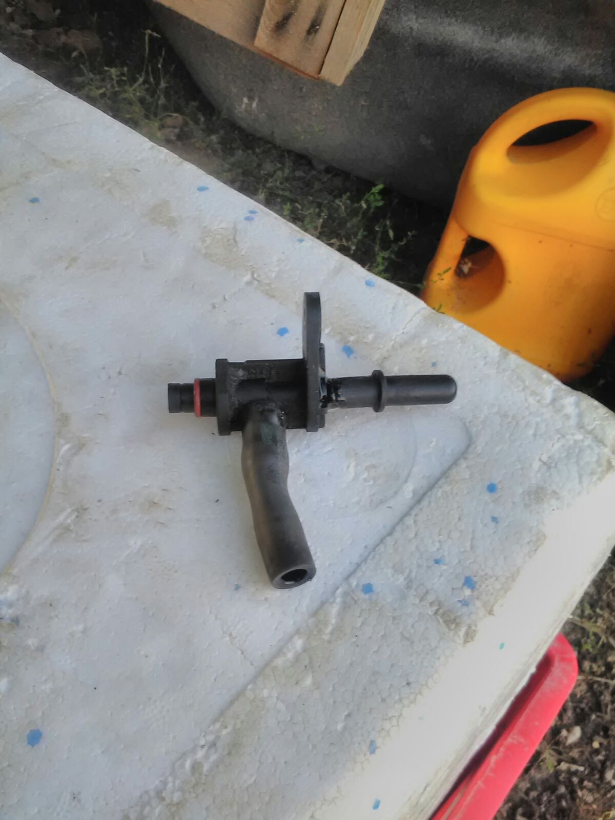 Нужна деталька от топливного насоса: тройничек, что собирает обратку с самого насоса , с форсунок, и направляет обратно на фильтр. На фото, тройничек остался с куском трубки.