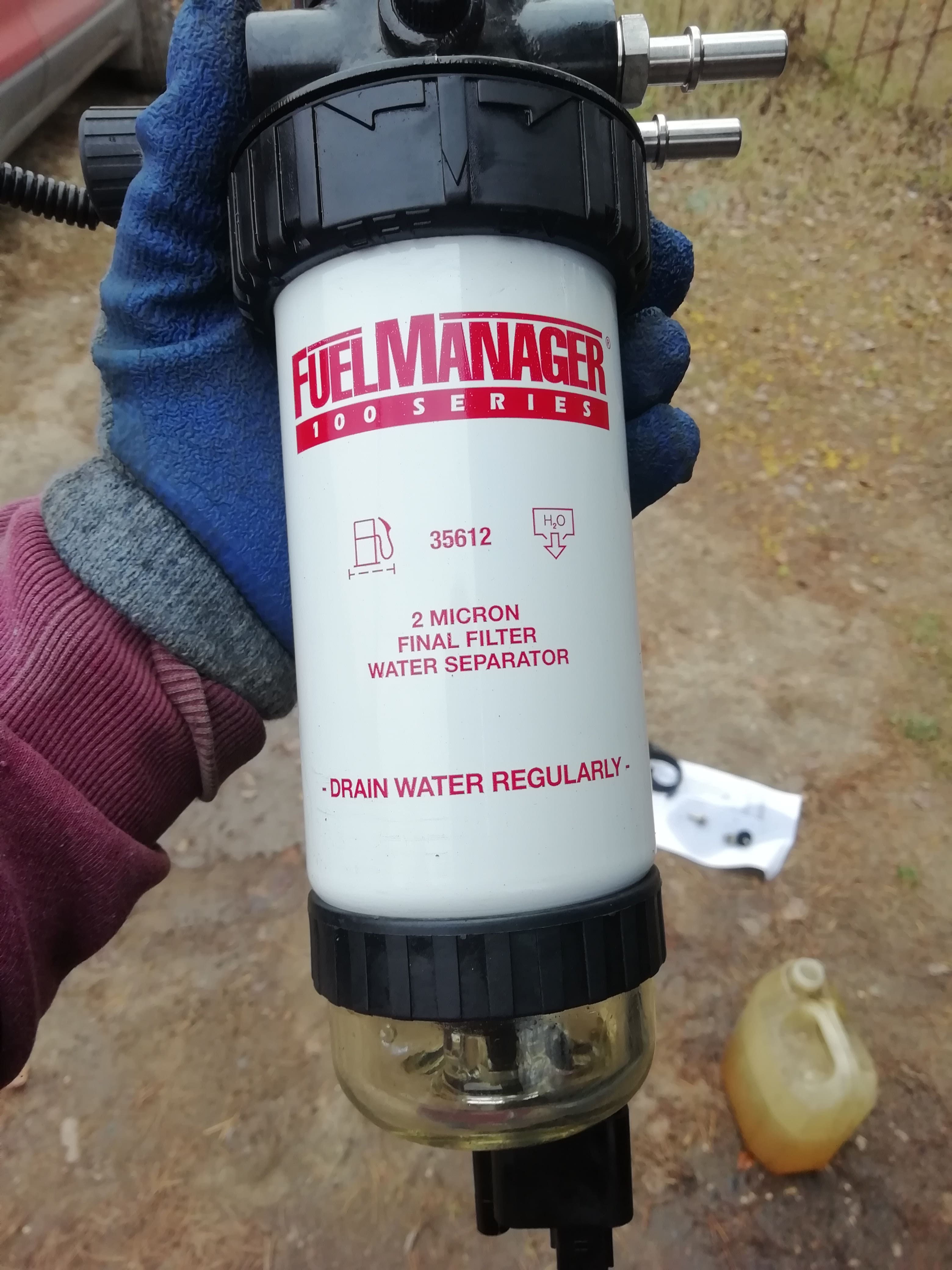 Нет я ни чего не выкидывал, родной так и стоит, а вместо водоотделителя поставил этот, дополнительно. Единственно с подогревом, а то 2микрона плохо фильтруют в мороз и забивается всё парафином, а с подогревом всё отлично.