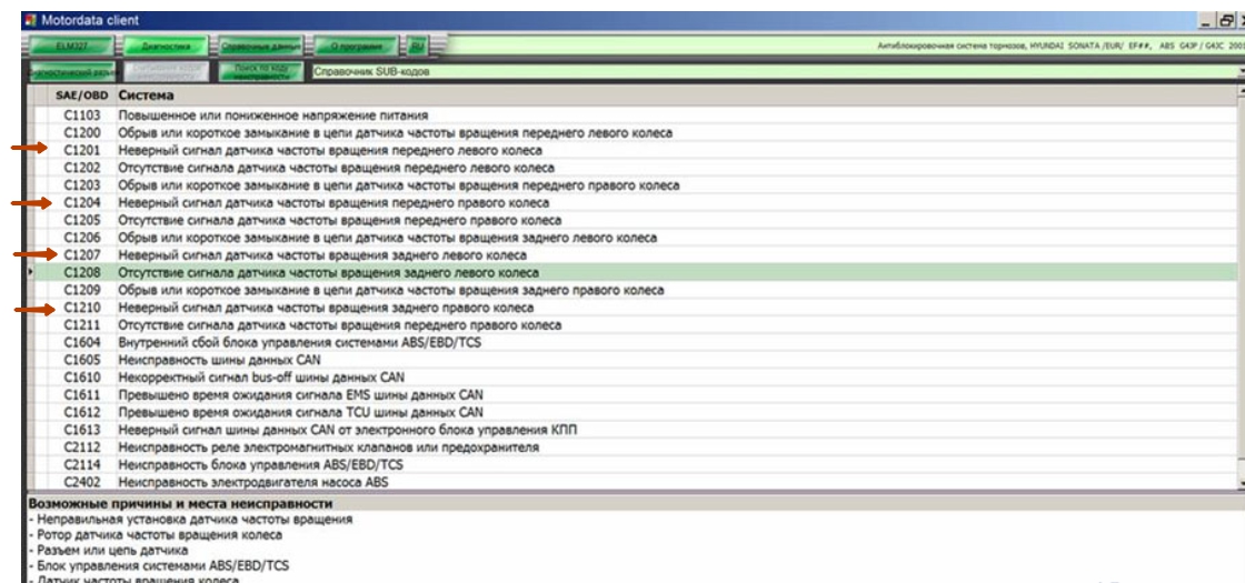 В тесте хоб драйва на скорости вижу показания всех 4-х датчиков АБС. (не пропадают показания на любой скорости)