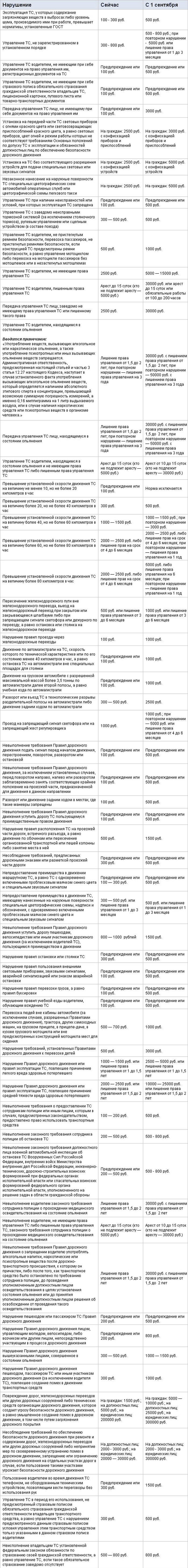 8. Передача управления транспортным средством лицу, не имеющему при себе документов на право управления им (ст.12.3.3) - штраф 3000 руб. (было 100 руб.)