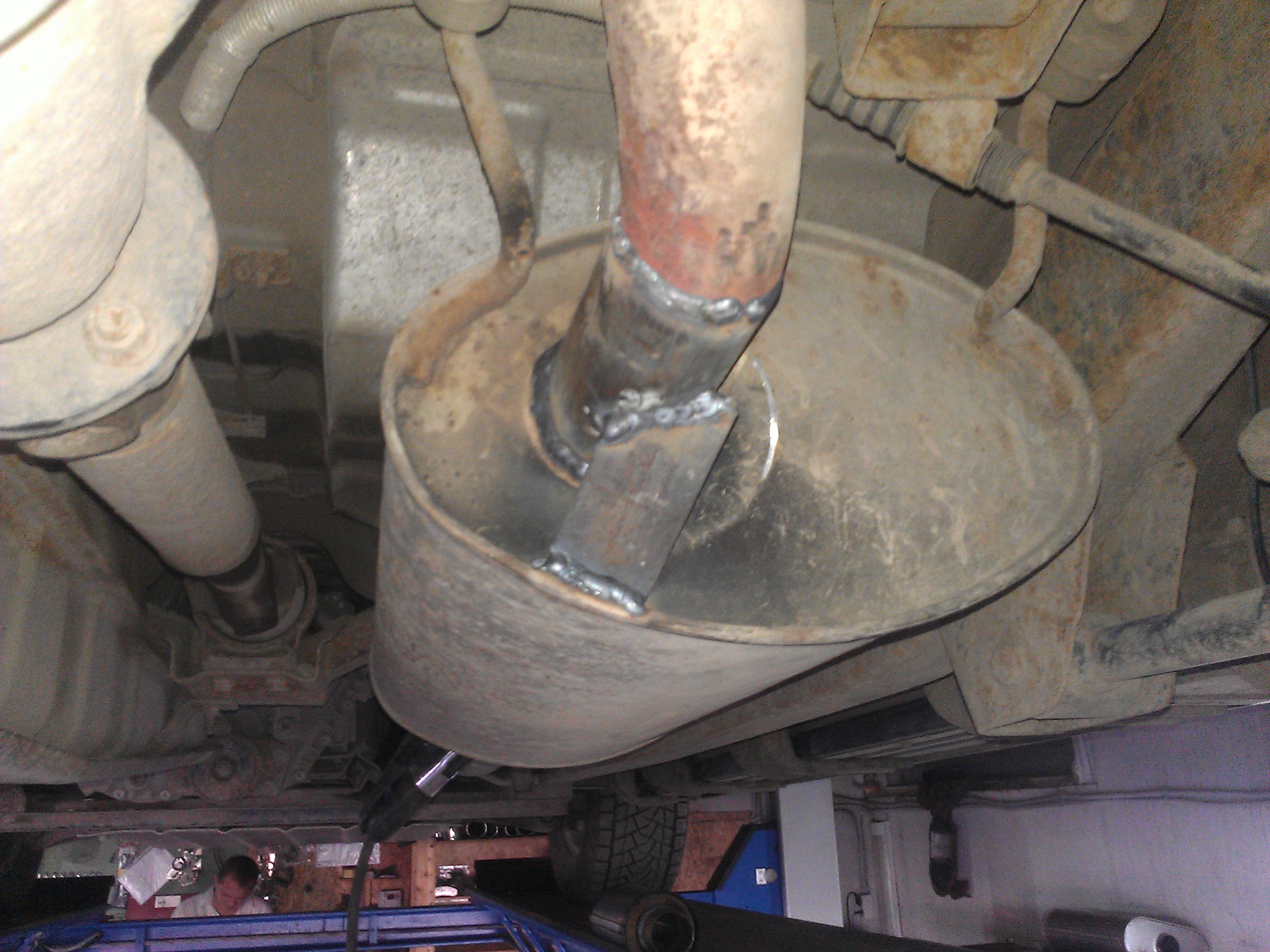 В общем думал я думал и решил прежде чем покупать новый глушитель посоветоваться с мастером по их ремонту.Приехал я к нему вот так Вложение 1745 и в багажнике задняя часть с отвалившейся трубой. Вложение 1746Вложение 1747 С начала он мне посоветовал выкинуть всё это дело, а прогнили места именно где сварной шов. До начала средней части глушителя почти всё нормально Вложение 1748Вложение 1749Вложение 1750 .Почему почти всё? Вибрационная муфта (или как её там) тоже начала подгнивать . Потом он всё же решил осмотреть всё более подробно и машина была поднята на подъёмник. Как он мне пояснил, что всё беда из за катализатора, он создаёт в системе высокую температуру и слабые места начинают прогнивать. В результате он взялся за ремонт и всё оказалось не так уж плохо как казалось. Вот задняя часть уже сварена Вложение 1751Вложение 1752Вложение 1753 , приварена к средней Вложение 1754Вложение 1755Вложение 1756Вложение 1757. Заодно было принято решение поменять катализатор на пламя гаситель. Вот он ждёт своей очереди Вложение 1758 . Стоит 3500 рублей. Демонтаж катализатора Вложение 1759Вложение 1760. Сам катализатор на мой взгляд оказался исправным, не оплавлен и просвечивался Вложение 1761 . Ну, что сделано то сделано. Вот пламя гаситель на месте Вложение 1762Вложение 1763. Всё было сделано часа за полтора,стоимость работы 2500 и год гарантии. На счёт пламя гасителя , мастер уверял , что я почувствую разницу, но по мне вроде всё осталось как было. Может надо побольше поездить. Жена говорит, что машина стала поинтересней ехать. В целом всё сделано качественно и надёжно. Я пока доволен.