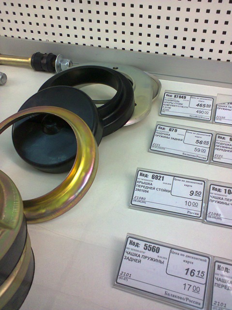 подушки на пружины от ВАЗ 2101 — стандартные (около 60 руб шт) около 2,5 см