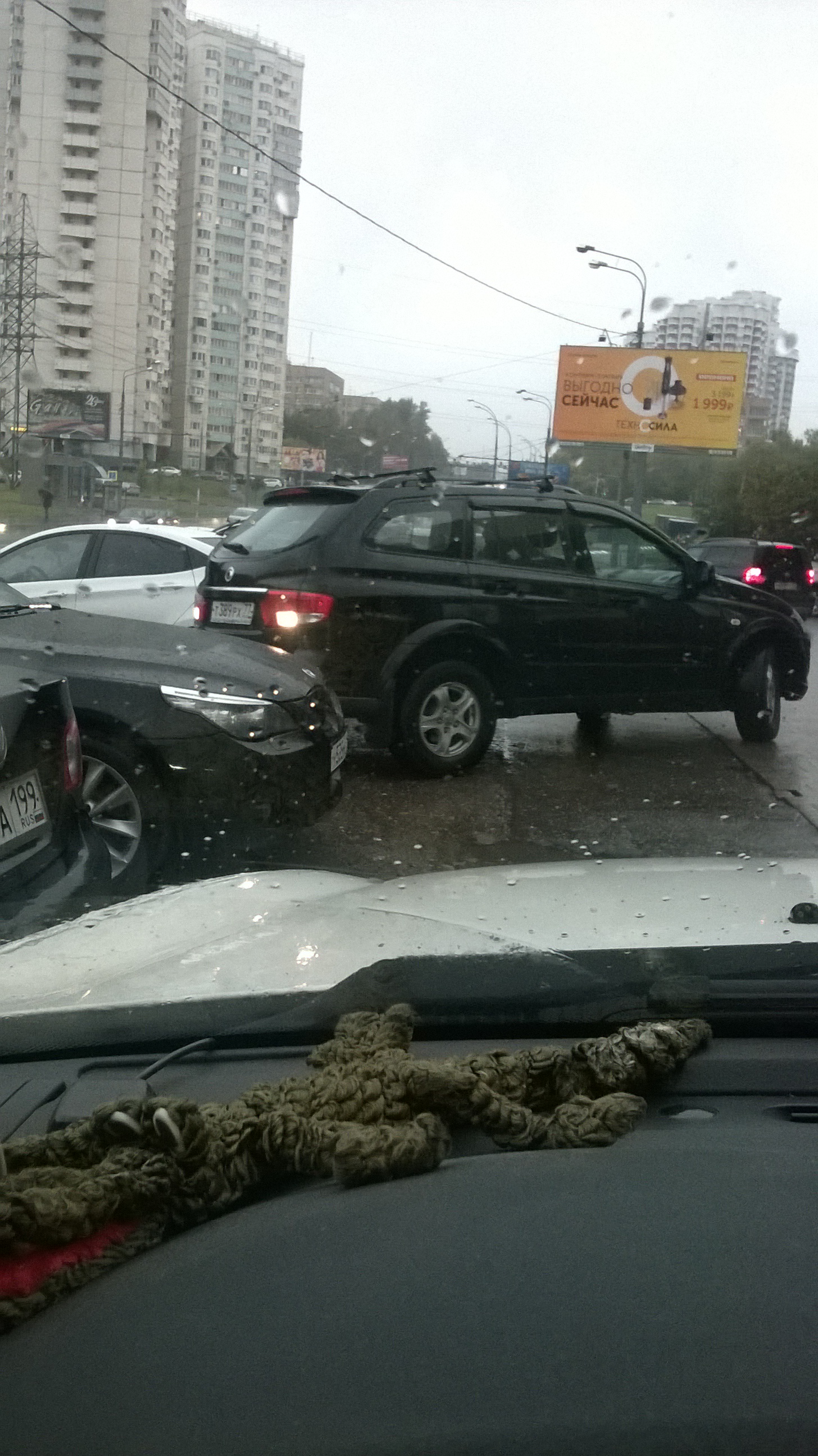Которая ничего и никого не видит по сторонам, у которой не работает задний левый стоп-сигнал, у которой оторван левый задний брызговик и имеется вмятина на правой задней стойке! Третье транспортное кольцо 11-30 возле Москва-Сити.