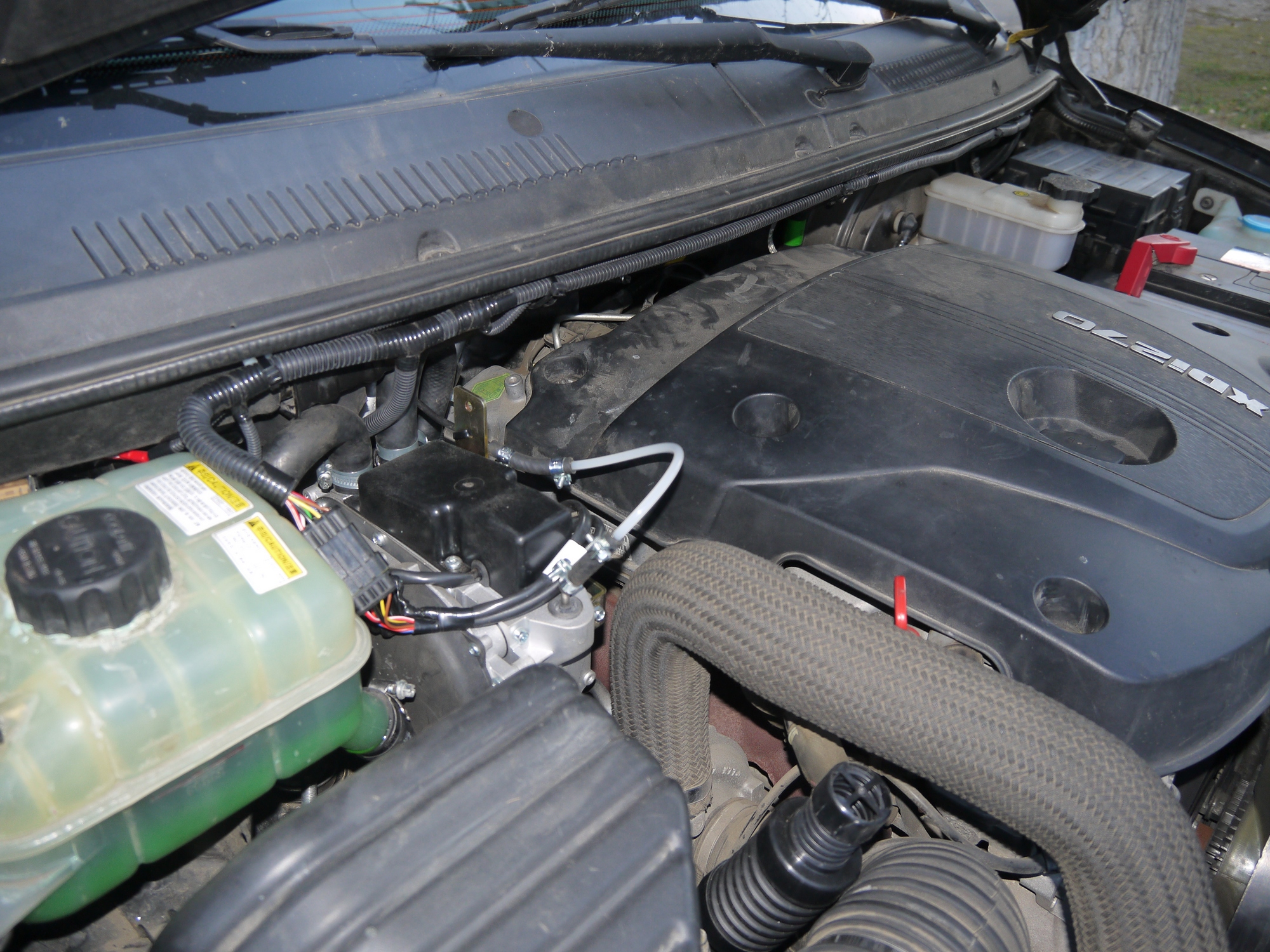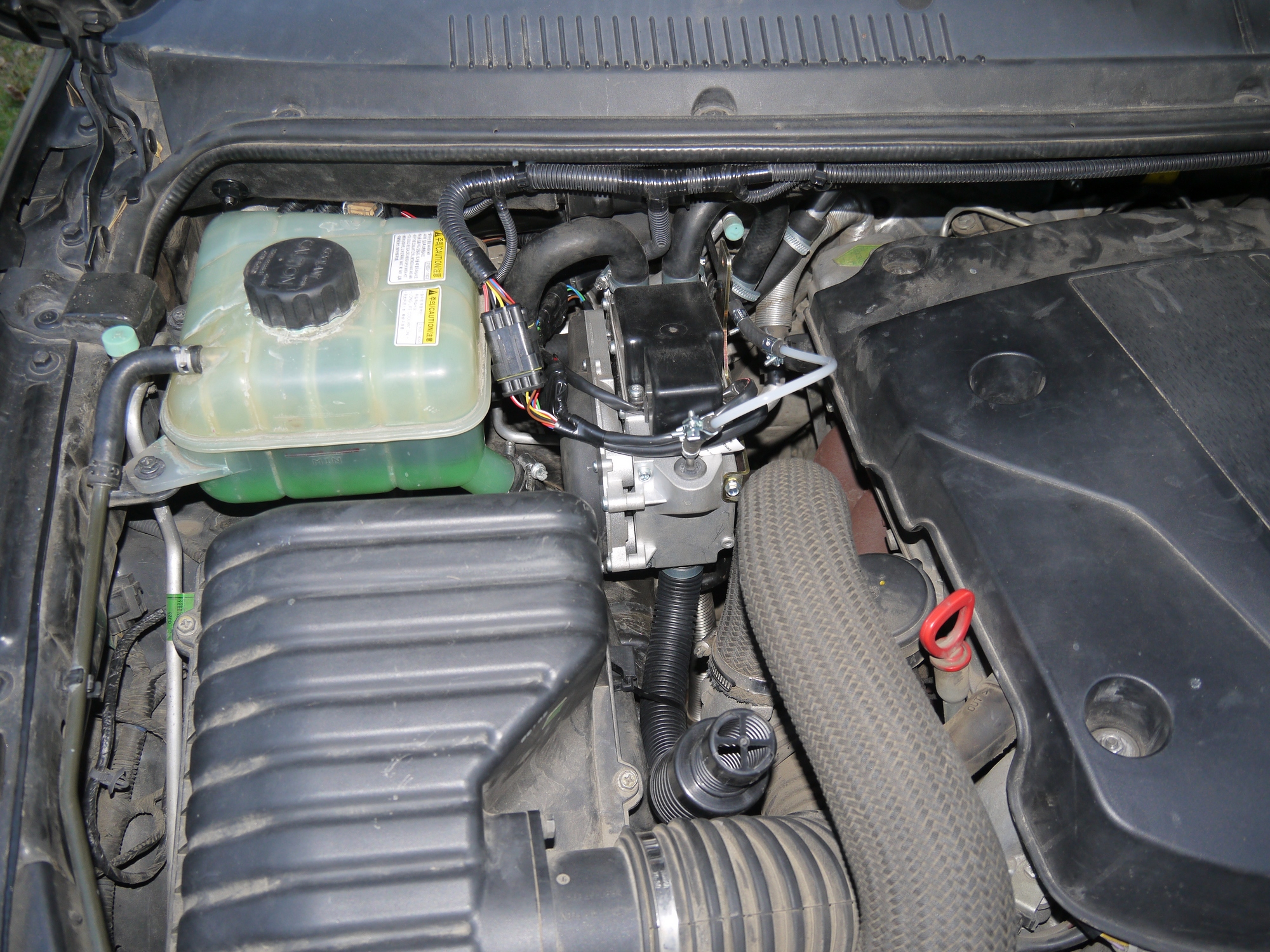 Если ставить его за воздушный фильтр, то пластмассовая крышка оказывается в опасной близости от турбины, вернее от трубы, которая идет на турбину. А там, как я понимаю, приличные температуры бывают.