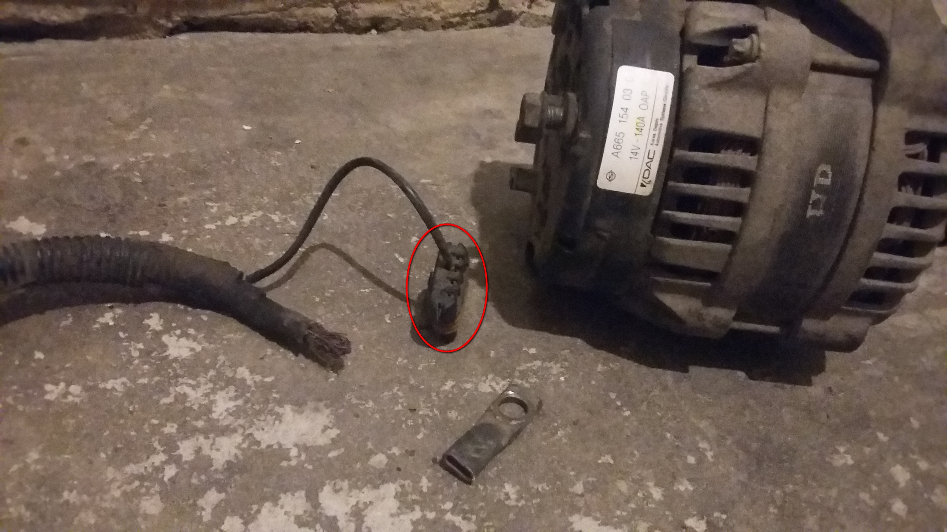 Имеется снятый. Что надо посмотреть? Ну а теперь о причине снятия. После проезда по лужам МУЛЬТИК орал, малая зарядка. Потом она пропала совсем и забив слово генератор на поиске форума,наткнулся на данную тему. Почитав, решил снимать. Когда снял увидел такую картинуВложение 8695 Достался этот колхоз с самодельной клеммой от старого хозяина. Да и ремень стоял 2257 (не родной , + вытянулся , по этому после луж ну я так думаю он проскальзывал). Да ладно ни чего страшного подумал я и пошёл к компу. Когда забил на яндексе номер провода(665 540 52 10) идущего к генератору наткнулся на вот эту тему,http://autoclub-ssangyong.ru/showthread.php?t=2466& на нашем же форуме. ( К модераторам, может их объединить, если было бы всё в одной теме, снимать генератор не пришлось). То что снял, не жалею, сделаю профилактику. Новый провод покупать за эти деньги не хочу,буду думать?! Кто то раньше переделывал сей провод. Какой пробег после переделки? И ещё шум и люфт в помпе, ну об этом в другой теме.