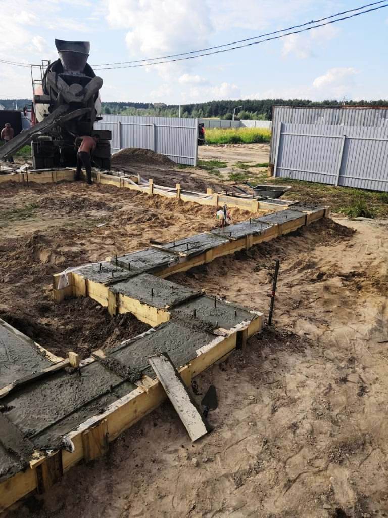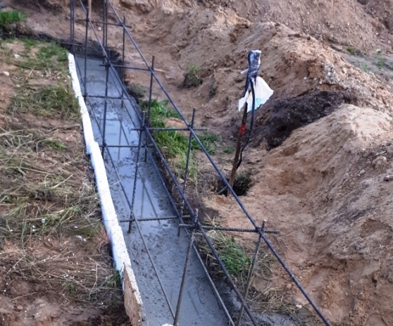 Все стройки закончили в клубе, а я решил только начать очередную. Фундамент ленточный выкопал в ручную на 130 (промерзание тут до -35 до 118см) с посадкой плиты (пола) сразу связана с лентой. Иак траншея 130,ширина 45 (почва - 90%) на низ рубероид (что бы молочко от бетона не уходило в землю) засыпал 5-7 см гравия, внешняя сторона траншеи рубероид и пенопласт 5см,внутренняя рубероид (склеил пеной). Арматура 12 стойки 10 продольные 4 полосы вдоль всей траншеи 70 погон. метров. Залил 1 этап бетона М-300 Б-20. Второй этап залил полностью пол бетоном связанный арматурой с леной на 20 см(также утеплил пенопластом и внизу рубероид ,пред этим машинкой утромбовал песок.. Теперь жду когда засохнет хотя бы 10 днейВложение 11006