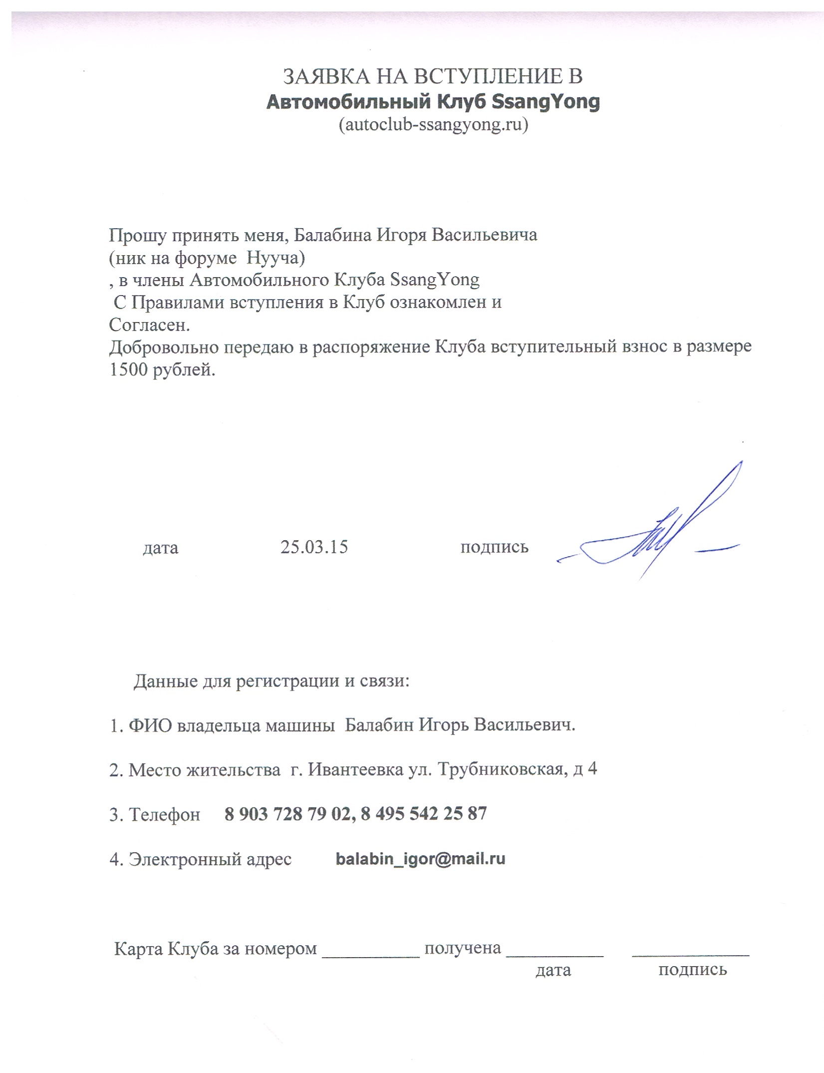 Прошу рассмотреть мою кандидатуру для вступления в клуб! Очень жажду дружить с SsangYongоводами! :)
