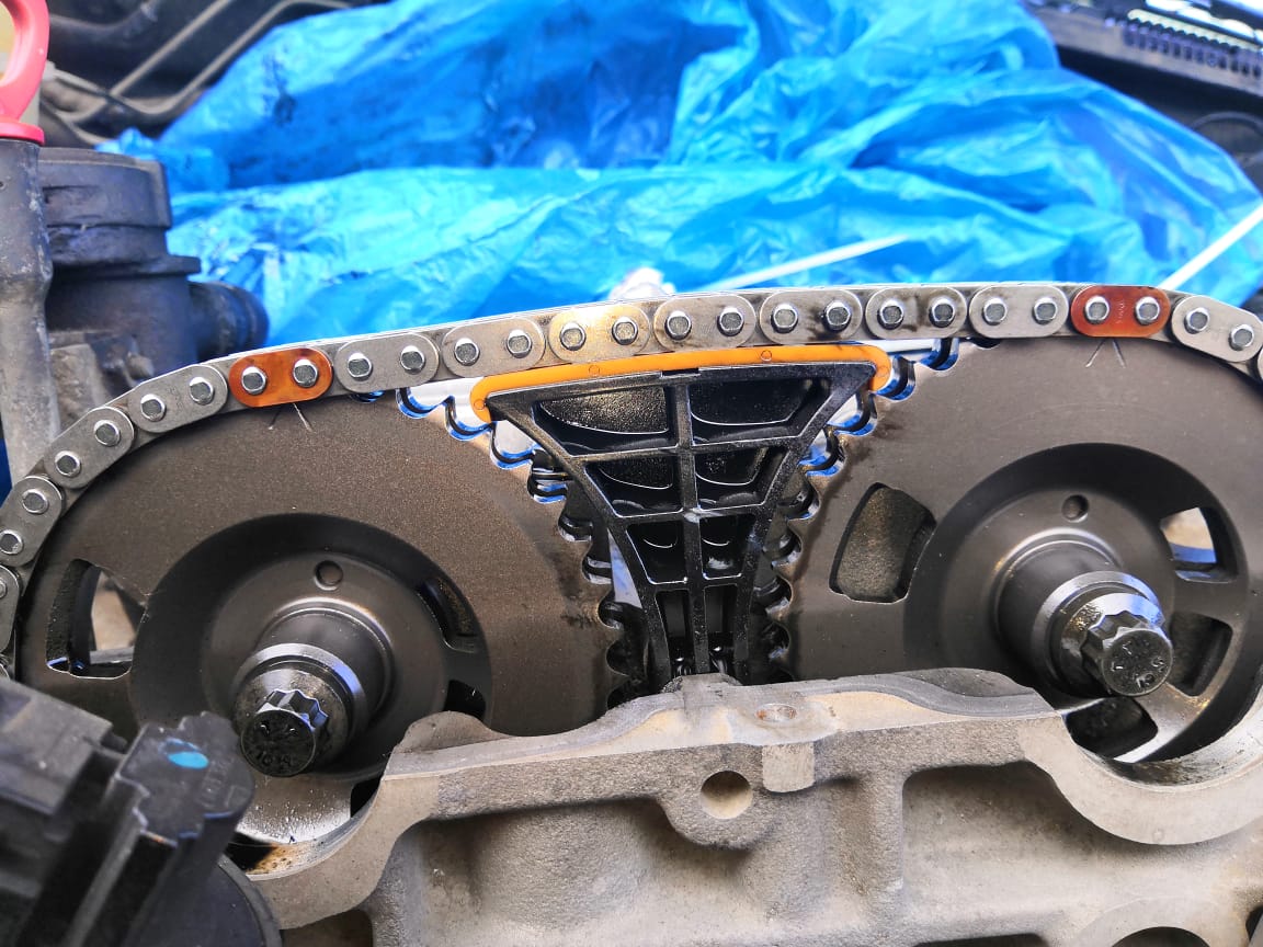 Дмитрий, я не про то, что написал Олег, хотя он пишет правильно. Он же не видит что у Вас и как, поэтому он пишет Вам то, что и как должно быть. Но метки на распредвалах, шестернях и прочее должны быть так, как расписано в документе (у меня он называется Ssang Yong 13) начиная с 5. Install the intake and exhaust camshaft sprockets and the timing chain и далее.