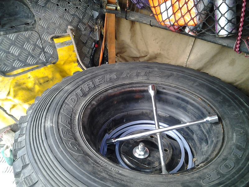 Для соревнований вешать запаску в штатное место, по-моему, не правильно. В грязи с подутопленными / подспущенными колесами ее будет если нереально, то очень сложно достать.