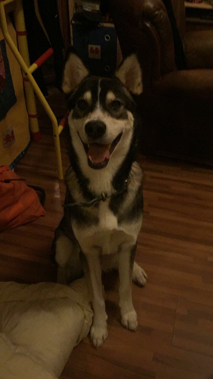 Пёс умный, толковый, очень дружелюбный к людям и к другим собакам, к кошкам не агрессивный, обычно гоняет кошку, пока не загонит на дерево, но ни разу в жизни никого не кусал, ни кота, ни взрослого человека, ни ребенка. Бегает очень быстро, на большие расстояния, несколько раз убегал, но всегда находил дорогу домой, в активных играх практически неутомим, прыгает тоже высоко. В еде неприхотлив, может есть сухой корм и натуральную пищу. Знает некоторые команды, очень быстро обучается. Лает редко, но голос очень громкий. ОЧЕНЬ активный, в городе такой собаке тяжело, минимум 3 часа активных прогулок в день - жизненная необходимость, иначе от скуки начинает громить квартиру, при этом естественные нужды хорошо сдерживает до выгула (минимум 2 раза в день). Прекрасно уживётся со всеми членами семьи, включая детей.