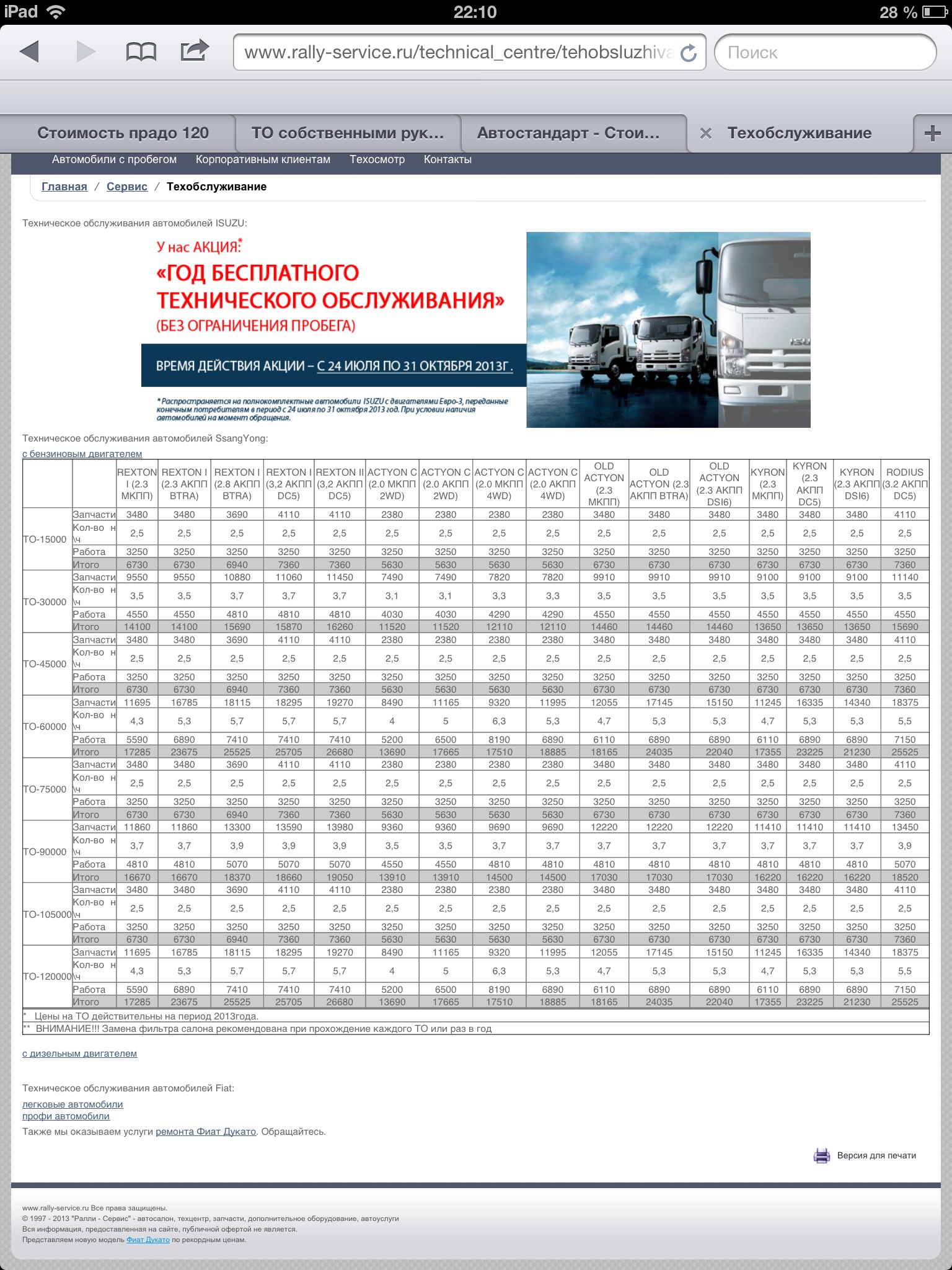 Делал все время в ралли сервис сейчас 120 надо делать нашел в инете ребят за 21000 в ралли 22.000