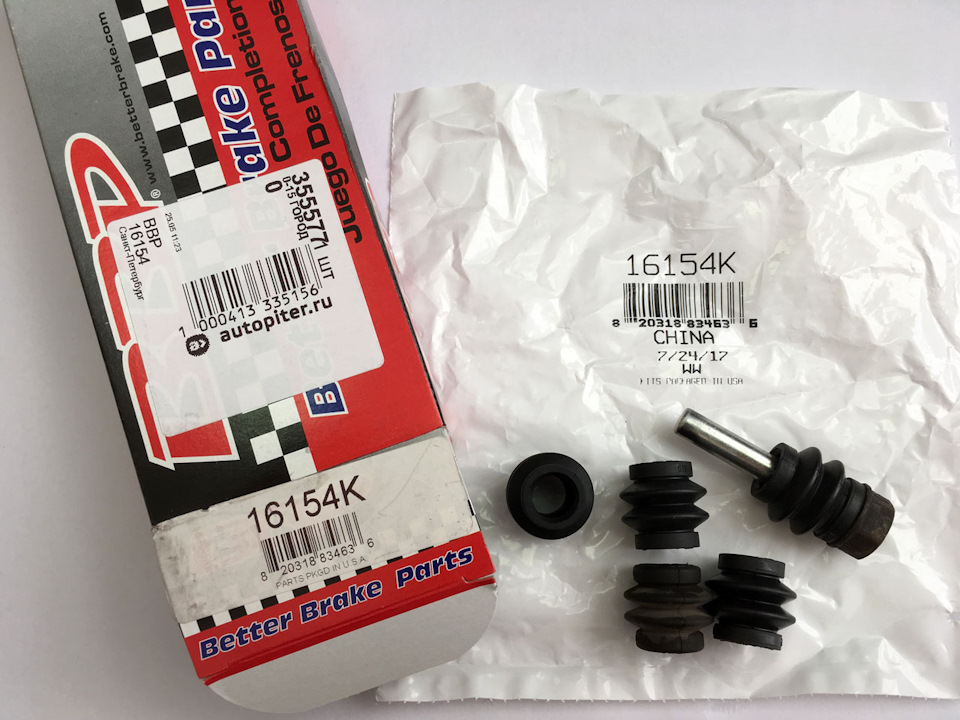 Во всех этих ремкомплектах элементов по 2, т.к. они предназначаются для двухпоршневых суппортов. У нас же задний суппорт однопоршневой, так что одного набора хватает на переборку обоих суппортов + 1 прокачной штуцер нужно докупить.