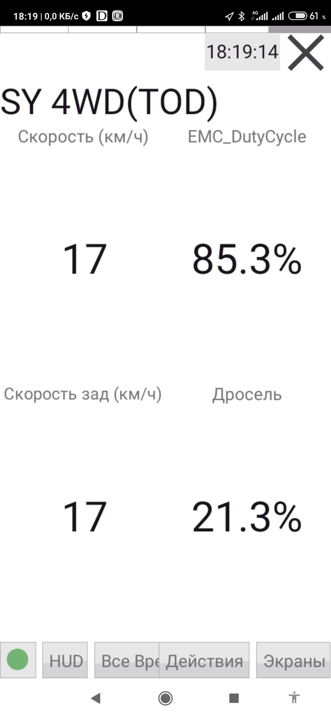 В режиме 4L показания EMC 85,3% не зависимо от скорости и нажатии педали газа (сильно не разгонялся, максимум 20км час).