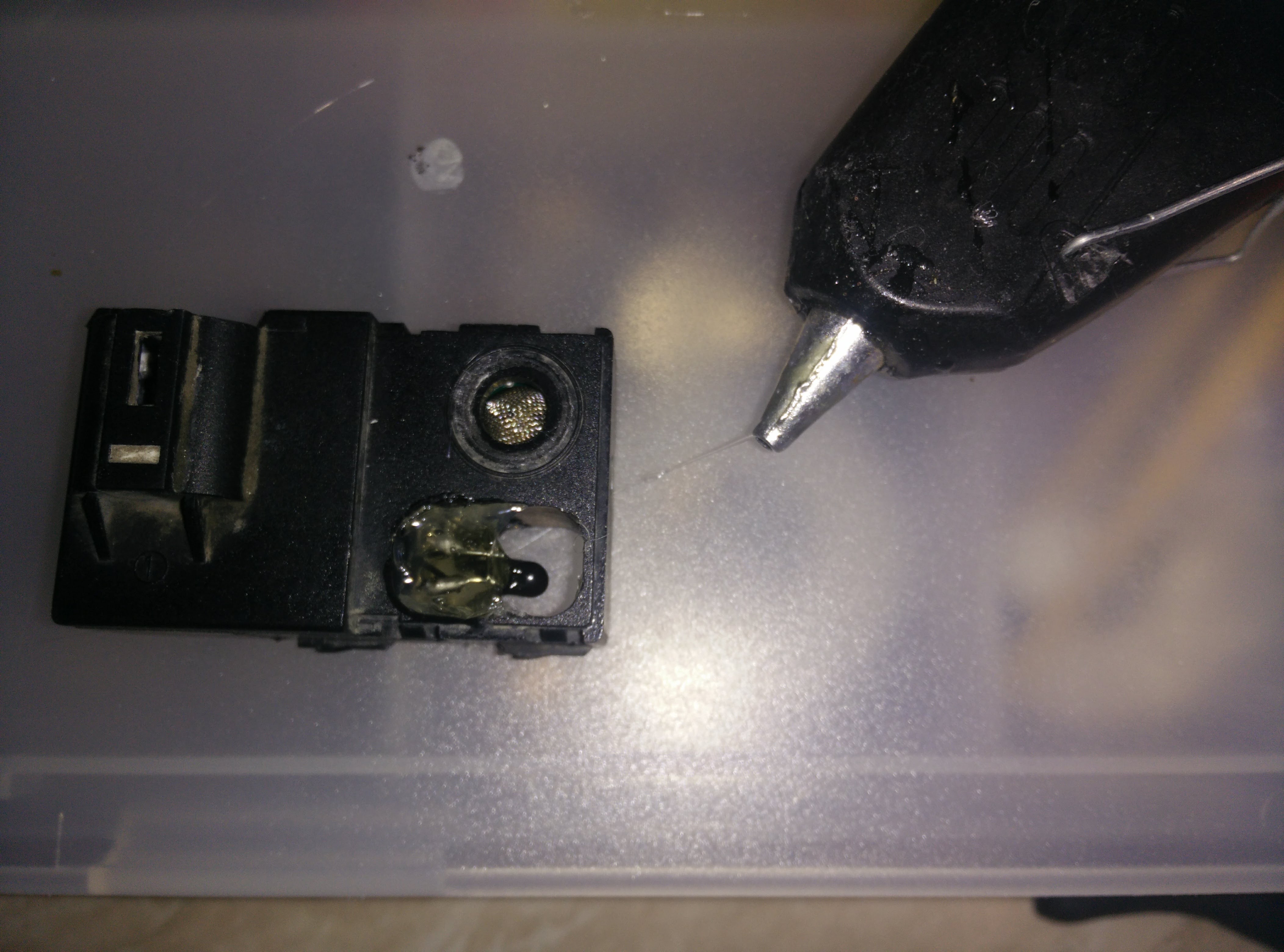 Также залил клеевым пистолетом датчик качества воздуха, я его работы за 6 лет эксплуатации не заметил.